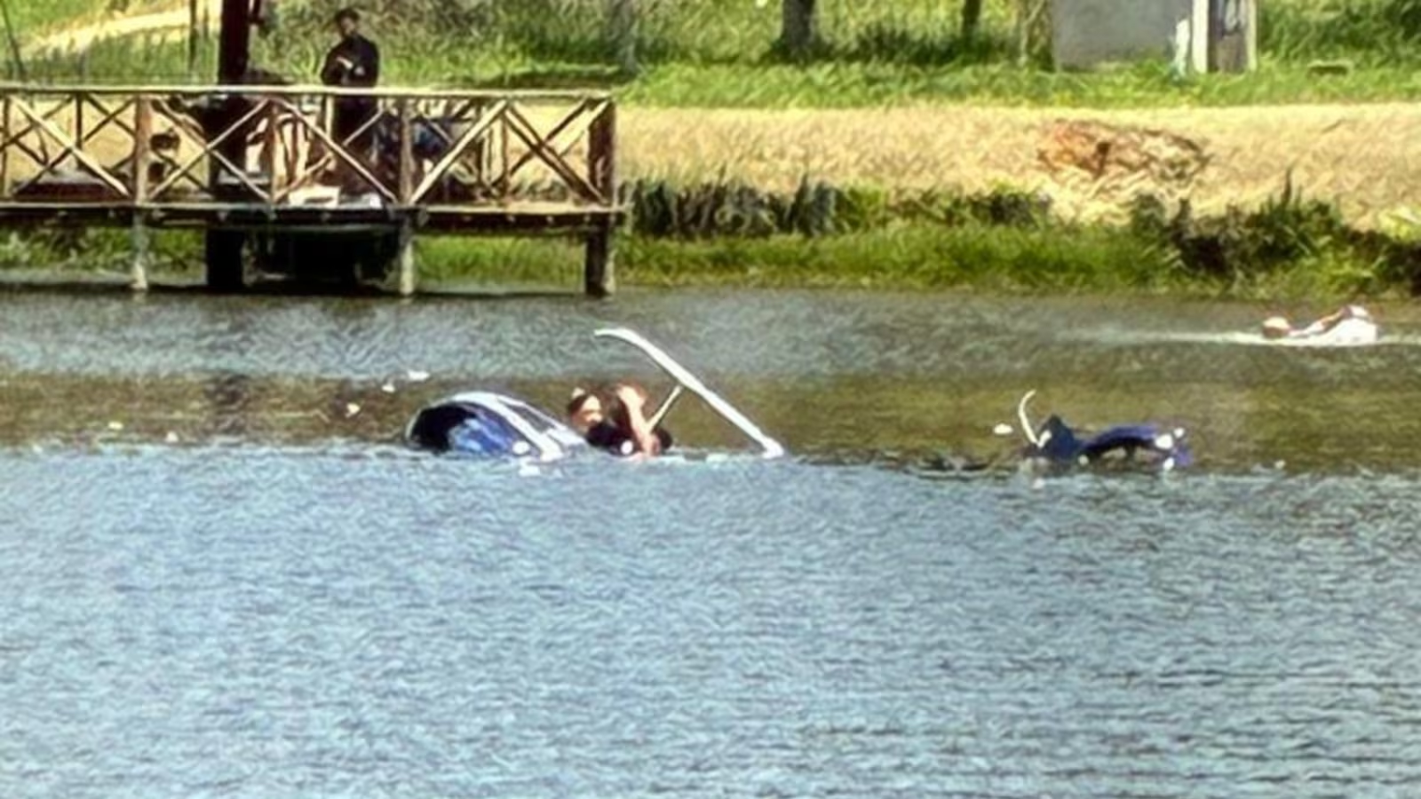 Imagens registradas por testemunhas mostram a aeronave parcialmente submersa no tanque do pesqueiro, que pertence ao restaurante Barbacoa Fishing. Apesar do susto, a estrutura do estabelecimento não foi afetada e nenhuma pessoa que estava no local se feriu.