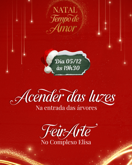 A abertura oficial acontece nesta sexta-feira, dia 5, às 19h30, na Entrada das Árvores. O tradicional Acender das Luzes promete transformar o local em um grande cenário iluminado, com mais de 124 mil microlâmpadas instaladas em 124 árvores, criando um dos pontos natalinos mais conhecidos da região. Após a cerimônia, o Complexo Elisa recebe a FeirArte, com barracas de artesanato produzido por artistas e manualistas da cidade.