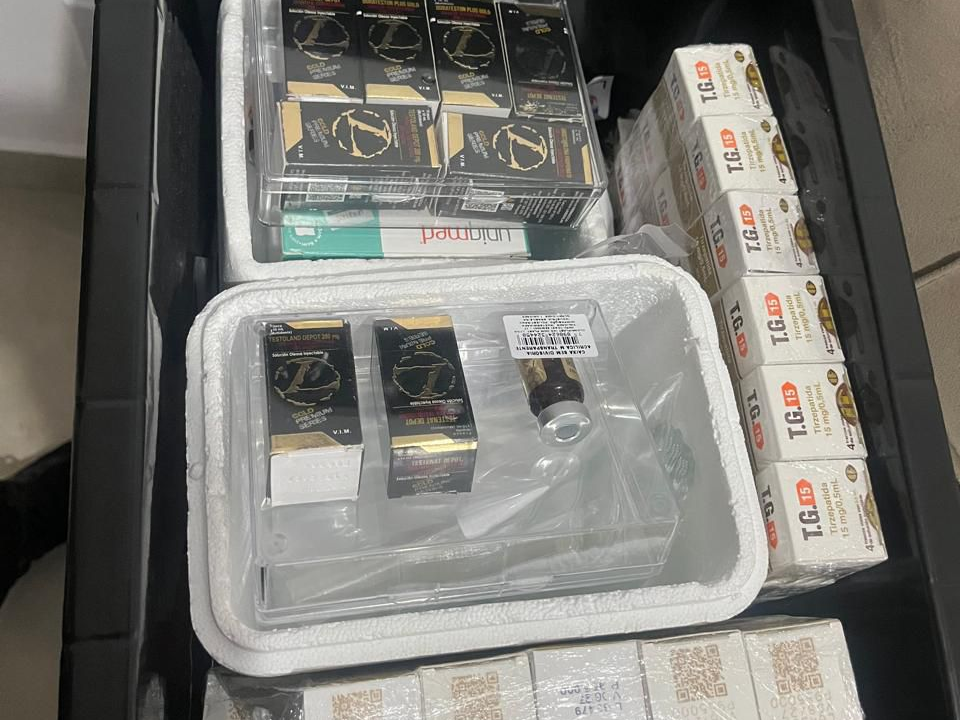 As apurações apontaram que os itens comercializados continham substâncias proibidas no Brasil e sem registro na Anvisa. Entre elas está a tirzepatida, princípio ativo de um medicamento utilizado no tratamento do diabetes tipo 2, mas que vem sendo procurado de forma irregular por seu efeito associado ao emagrecimento.