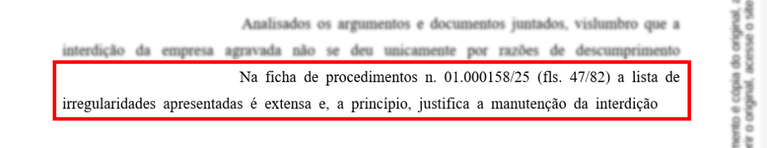 A desenbargadora destacou de forma explícita que a aprovação do LTA nº 19/2025 — documento usado pela clínica para pedir a reabertura — não é suficiente para afastar a lista extensa de irregularidades constatadas pela Vigilância Sanitária. A desembargadora também classificou como insuficientes os argumentos apresentados pela CLIMEP e entendeu que a desinterdição poderia representar risco sanitário grave, razão pela qual decidiu restabelecer imediatamente a interdição.