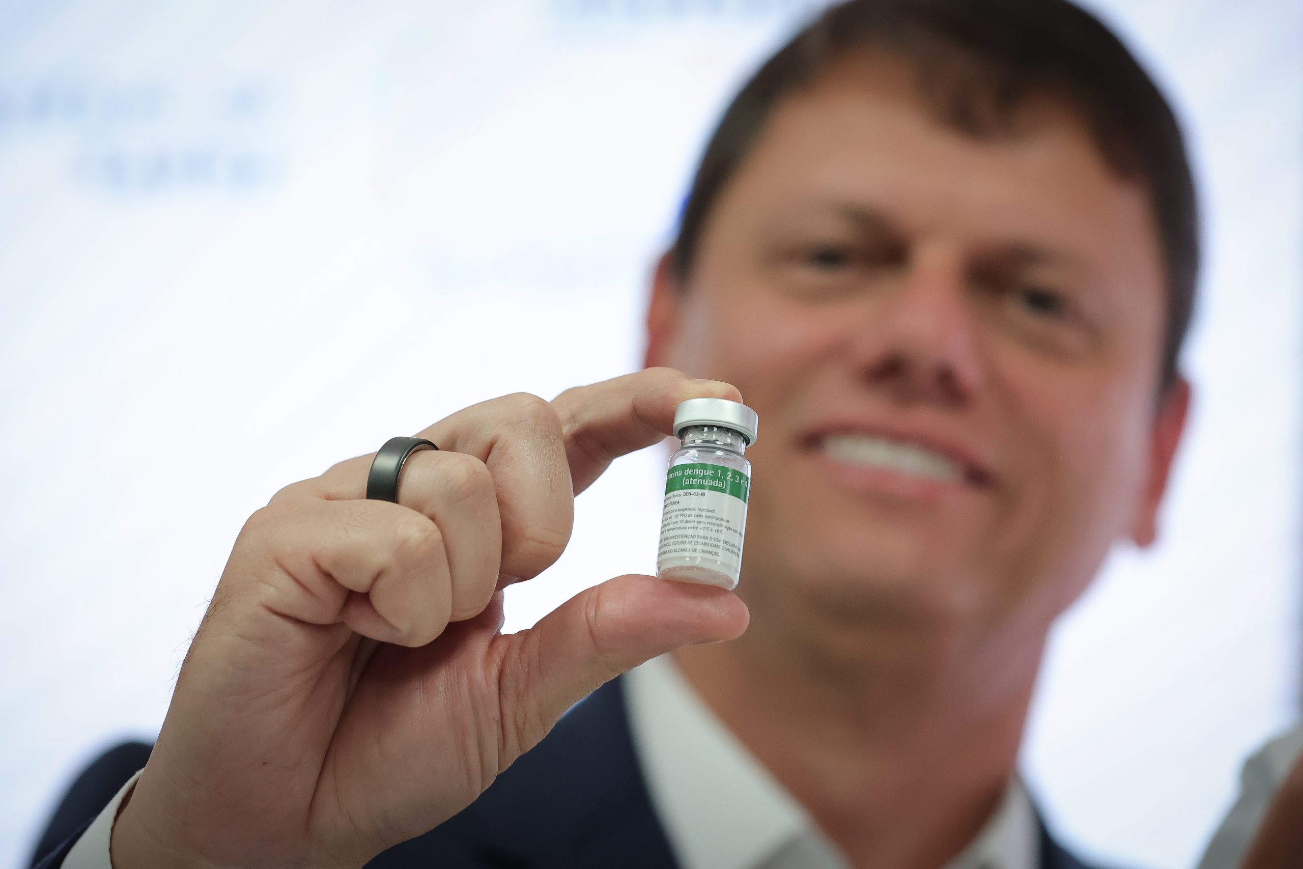 “A gente vem sofrendo muito com a dengue nos últimos anos e temos que celebrar a vacina brasileira. Por ser de dose única, vai nos ajudar muito na imunização, na cobertura vacinal. É a vitória da ciência, é a vitória da inovação, é a vitória do Butantan”, afirmou o governador Tarcísio de Freitas durante o evento que oficializou a aprovação nesta quarta-feira na sede do instituto, na capital.